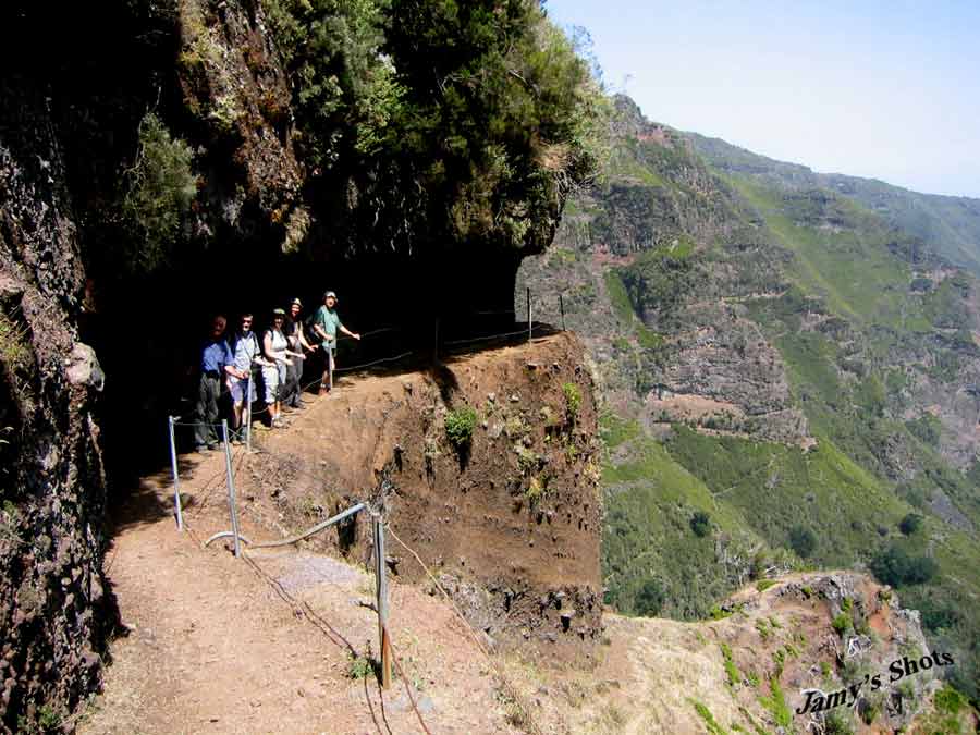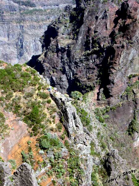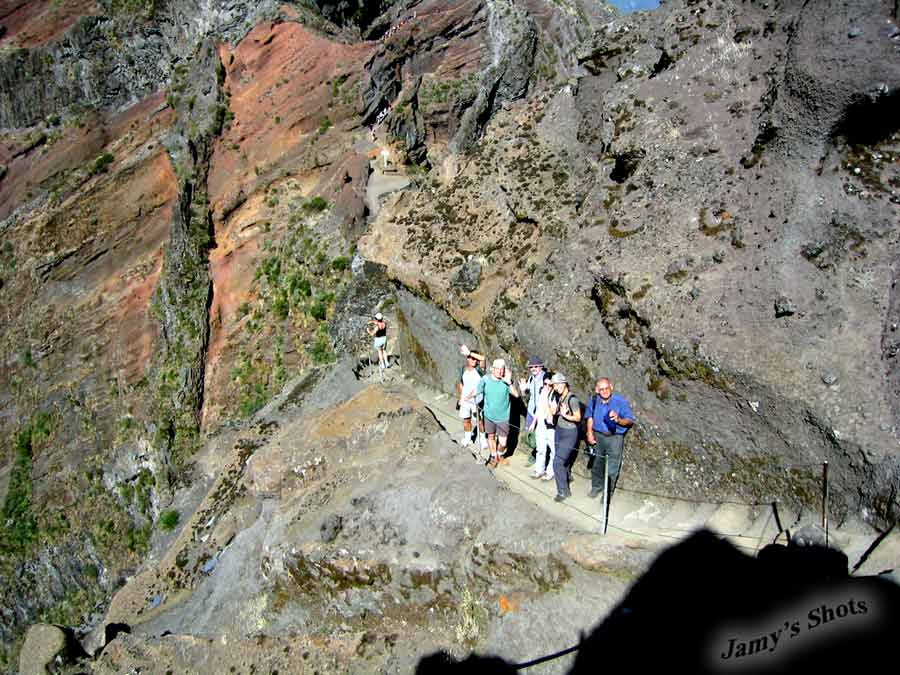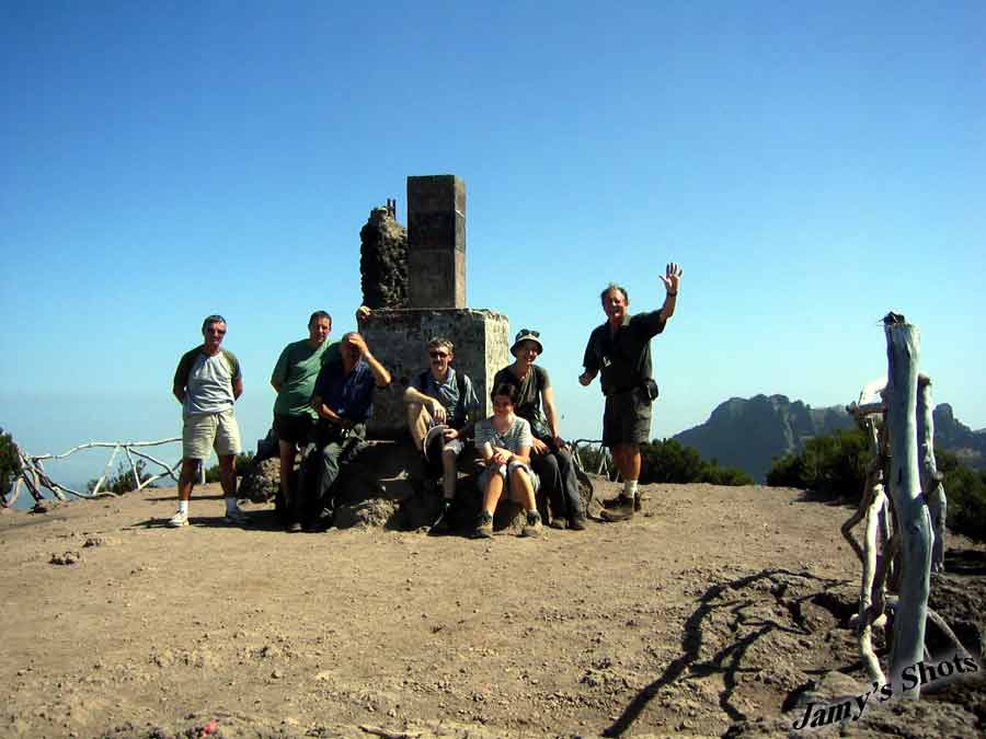 Six marcheurs au sommet du Pico Ruivo. Au fond les Torres.